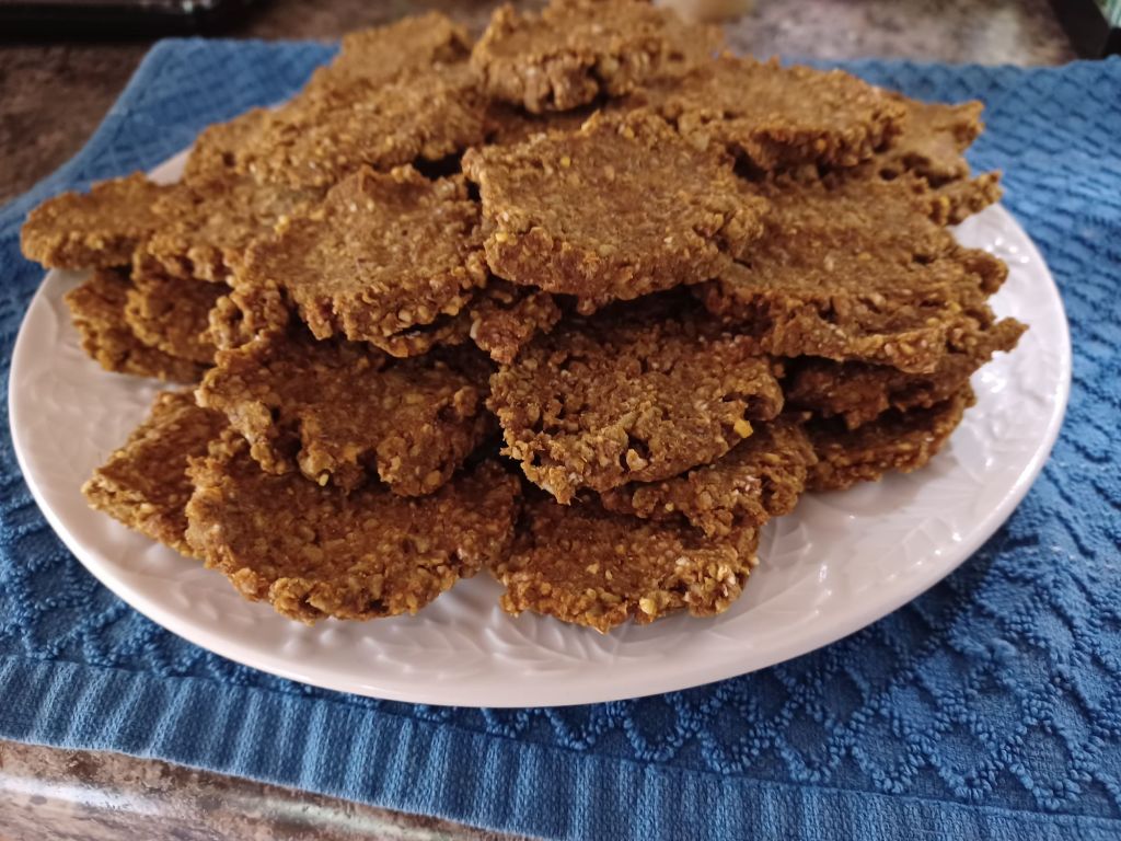 Line your cookie sheets with parchment paper and put large spoonfuls of the dough on the paper. Press down with the back of the spoon. As there are no rising agents in this recipe the size and shape of your cookies will be the same coming out of the oven as they are going in.